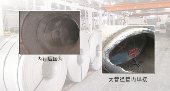 在舊管道內(nèi)部穿插內(nèi)襯薄壁不銹鋼管或?qū)⒉讳P鋼板采用卷板形式在原管道內(nèi)部進(jìn)行焊接,整體形成為不銹鋼內(nèi)襯層。
